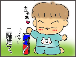 積んで遊ぶのが、好き。二段重ねて、大喜び。