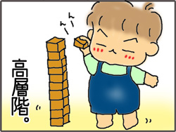積み木が高く重なってるの見ると、どうにも落ち着かないの。