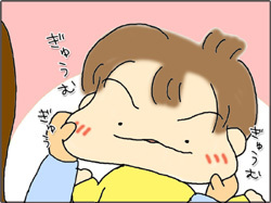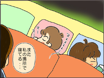 寝ている子を移動させて、場所を空ける。重い。