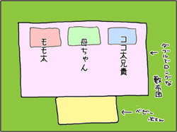 モモ太の場所で寝ると、足がはみ出るしで。